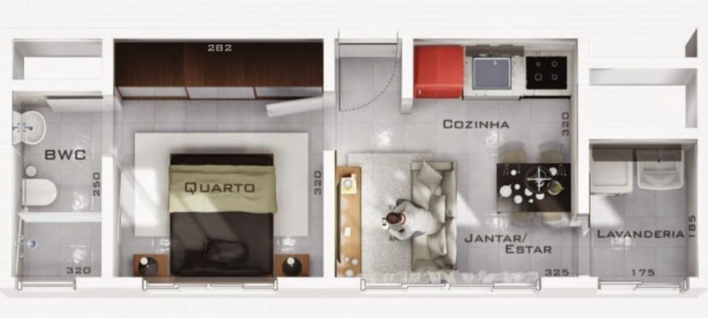 Apartamento no condomínio RESIDENCIAL TORRE ALVOREAR, 8º andar, com 30,530 m² de área privativa e 52,568 m² de área total, sendo 1 dormitório, 1 banheiro, cozinha/sala, área de serviço, 1 vaga de garagem, localizado no bairro Jardim Alvorada, Rua Vitor do Amaral, nº 776.